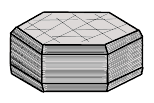 Hábito: Laminar que normalmente aparece en cristales pseudohexagonales, tabulares y en agregados subredondeados o morfologías mixtas entre las dos.