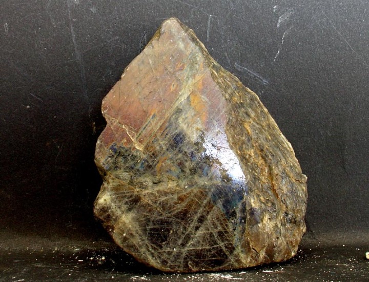 d. Labradorita: (Ab 50-30%, An 50-70%). Se diferencia del resto de los feldespatos por presentar reflejos nacarados grises o azulados muy característicos. Aparece en rocas de tipo "ofítico" y en rocas ígneas básicas y ultrabásicas.