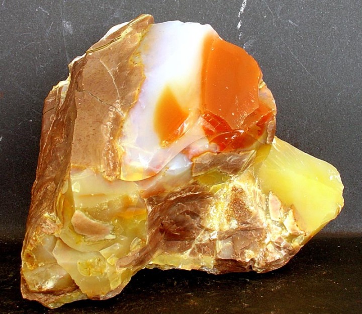 Ópalo común: Amarillo, pardo-amarillo, marrón y negro. Brillo céreo.