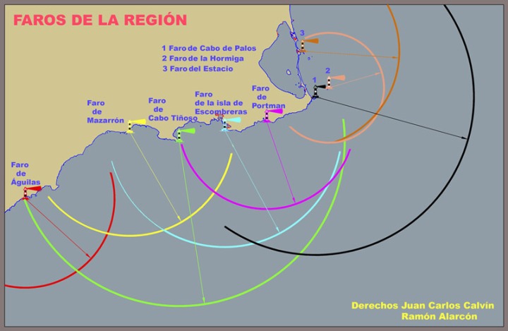 Murcia no es la excepción y sus 8 faros tienen alcances que se solapan entre sí (figura 4).