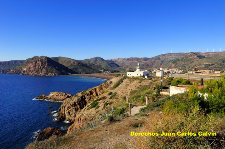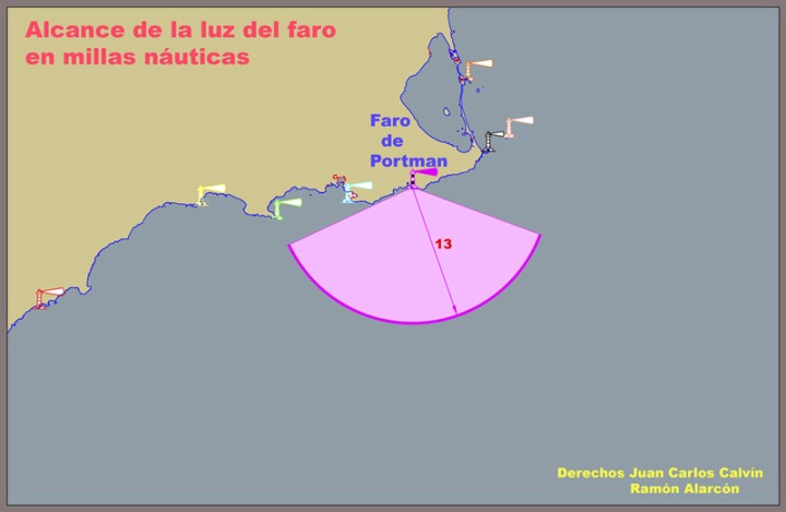 Fue proyectado en 1863, para dar servicio al concurrido fondeadero de Portmán, e inaugurado en 1865. Tras varias modificaciones de modernización de la fuente de luz, se electrifica en 1960. En 1977 se automatiza y se reforma de forma importante, respetándose sólo la torre y la linterna. Está formado por una torre y el edificio que la rodea, siendo todo el conjunto blanco (figura 2). Con el foco de luz situado a algo más de 8 m de altura de la base del edificio. Con una óptica de tambor de 500 mm y lámpara de 500 w, su alcance es de 13 millas náuticas (24 km) (figura 3). La señal es de luz blanca y de la característica de ocultaciones equidistantes, siendo su periodo de 3,5 segundos con la siguiente secuencia: luz durante 2,5 segundos, seguida de una ocultación de la luz de 1 segundo.