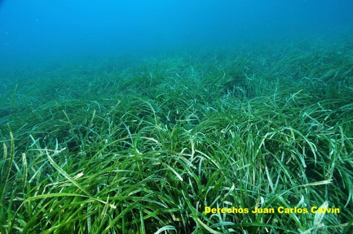 El paisaje a continuación de la roca en todo el perímetro de la isla es el de pradera de Posidonia oceanica (figura 3), que termina también sobre los 18-19 m por los vertidos de las ramblas (figura 5).