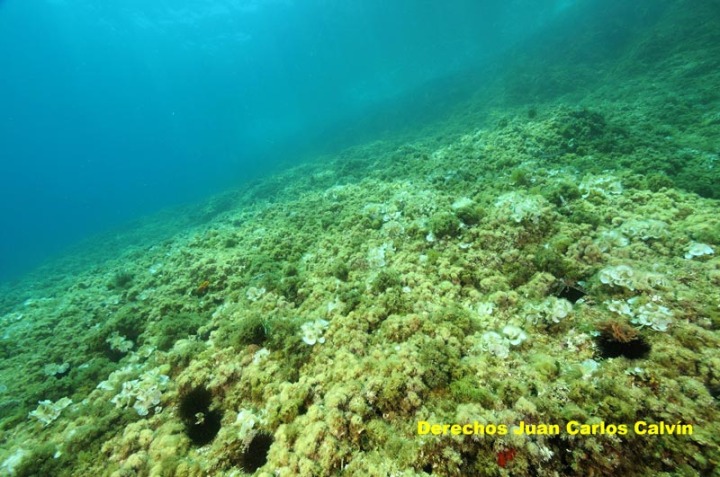 En este entorno rocoso podremos disfrutar del paisaje de rompiente (figura 1), ya lo observemos paseando por el acantilado o nadando con gafas y tubo en superficie, siendo esta última la forma de poder observarlo en los tramos costeros de acantilado vertical. Ya sumergidos, el paisaje que nos envuelve será el de roca bien iluminada (figura 6), pero si nos asomamos entre los bloques de la roca, sus paredes verticales y la grietas, cuevas, túneles y extraplomos que se han conformado al apoyarse unos bloques sobre otros, albergan los paisajes paredes verticales y cuevas, extraplomos y grietas, aunque este último paisaje suele estar algo empobrecido en estos fondos tan superficiales.