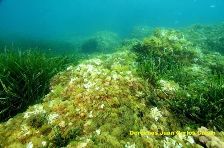Los paisajes que aparecen a continuación de la roca son: arenales superficiales (figura 4), césped de Cymodocea nodosa (figura 7), césped de Zostera noltii (figura 1) y pradera de Posidonia oceanica (figura 9).