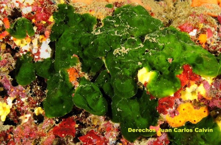 Alga recubriente, de color verde oscuro y consistencia cartilaginosa. El talo es lobulado o en forma de abanico en el borde, de más de 1 mm de grosor y está constituido por células redondeadas unidas por una matriz mucilaginosa hialina.