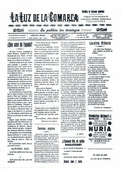 Al inicio de la década de 1920 se asistió a un fenómeno novedoso en la prensa local: la aparición de publicaciones de tipo cultural, como Caravaca o Industrias, dos revistas que no tuvieron excesivo éxito. También hubo lugar para la prensa política, en cuyo ámbito destaca Nueva Era, un rotativo muy radical en su discurso. En 1925 todos estos periódicos habían desaparecido, mientras que La Luz de la Comarca siguió publicándose hasta 1927.