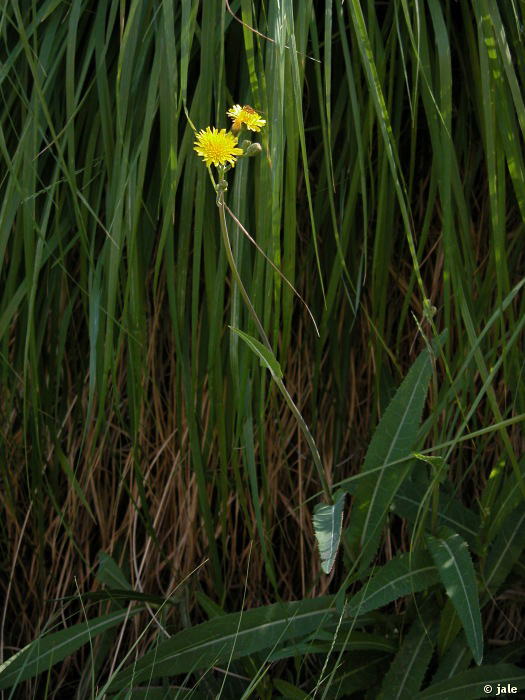 Hierba vivaz, perenne, rizomatosa, glabra. Tallos herbáceos de hasta 1 m, con hojas alternas, de oblongas a oblongo-lanceoladas, dentadas, en ocasiones pinnatífidas, con dientes algo espinosos, curvados, vueltos hacia atrás, las basales con peciolo, las demás sentadas, con aurículas. Flores liguladas, amarillas, en capítulos pedunculados, dispuestos en número de 6-11, en cimas terminales umbeliformes. Fruto de tipo aquenio, de hasta 3 mm de longitud, comprimido, con 1-2 costillas marcadas.
