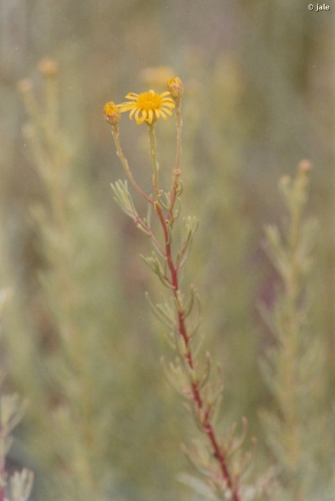 Pequeño arbusto de hasta 80 cm-1 m de altura, glabro, sin glándulas. Tallos erectos, ocasionalmente postrados, leñosos, con hojas simples, lineares, alternas, carnosas, dispuestas en fascículos axilares, de hasta 5 cm de longitud, estrechas, no mayores de 0,5-0,7 cm de ancho. Flores amarillas en inflorescencia de tipo capítulo, pedunculado, solitario o en grupos corimbiformes, las externas hemiliguladas, sólo femeninas, con lígula linear, las interiores flosculosas, hermafroditas. Fruto en aquenio pubescente, de hasta 3 mm, con vilano de 4-5 mm, también peloso.