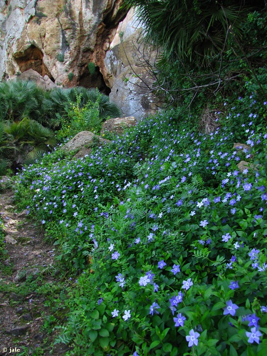 La hierba doncella (Vinca difformis) es oriunda del Mediterráneo occidental, en principio también autóctona de la Península Ibérica, aunque diversos trabajos botánicos indican que es alóctona en este territorio y procede de naturalizaciones de plantas ornamentales traídas antaño de su área de distribución original, en el sur de Francia, Italia e islas de Córcega y Cerdeña.