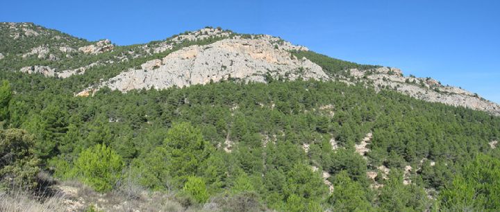 Encima de ellas, separadas por un claro contacto mecánico, se encuentra el núcleo del anticlinal tumbado que constituye la parte más elevada de la Sierra de Cambrón, formado por calizas del Lías medio y dolomías del Lías inferior que ya pertenecen al Subbético medio.