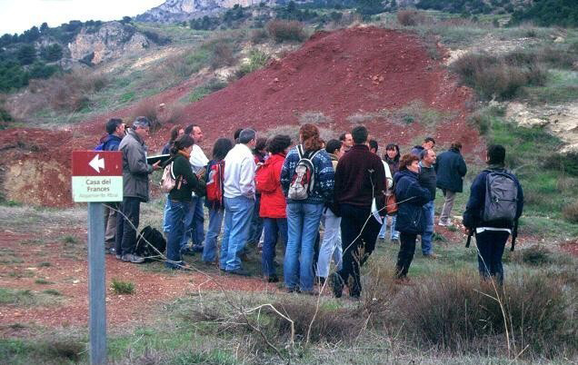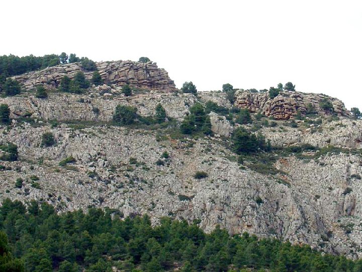 En el Triásico superior, hace 200 Ma., el sureste peninsular estuvo ocupado por grandes salinas costeras donde precipitaron yeso y sal (figura 2-A), pero a comienzos del Jurásico los terrenos que se visitan son ocupados por el mar y se origina una plataforma carbonatada, relativamente somera, donde precipitan fangos calcáreos que posteriormente darían lugar a las dolomías (figura 2-B). Más tarde, la zona emergió y bajo un clima de tipo intertropical las dolomías se karstificaron y sobre su superficie precipitaron óxidos e hidróxidos de hierro (figura 2-C). Algunos autores calculan que la emersión pudo durar unos cinco Ma., en la denominada discontinuidad intrasinemuriense, transcurridos los cuales, el mar volvió a invadir la zona y sobre los sedimentos anteriores se depositaron nuevamente fangos calcáreos; calizas con restos de lamelibranquios (almejas), gasterópodos (caracolas), fragmentos de coral, etc., que bajo un clima semejante al que existe actualmente en las Bahamas, proliferaron los crinoides (lirios de mar) y se formaron pequeñas concreciones carbonatadas llamadas oolitos (figura 2-D).