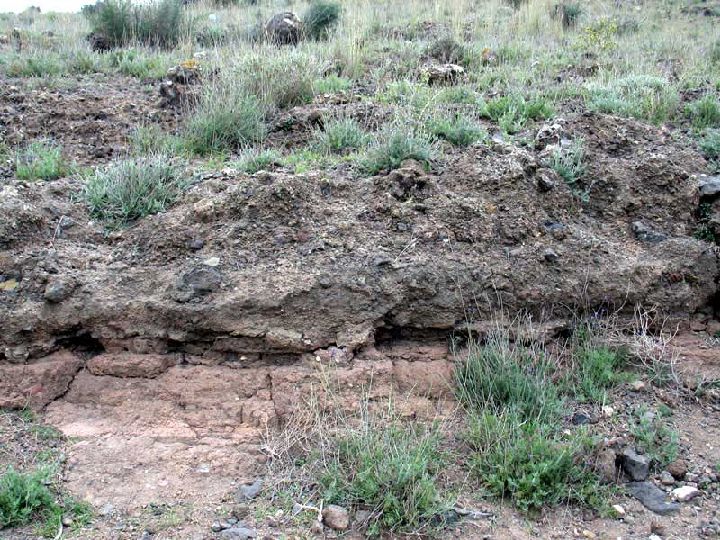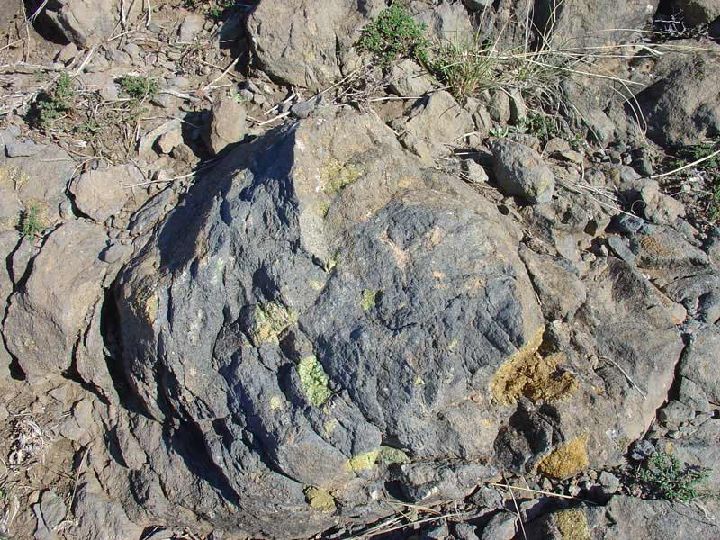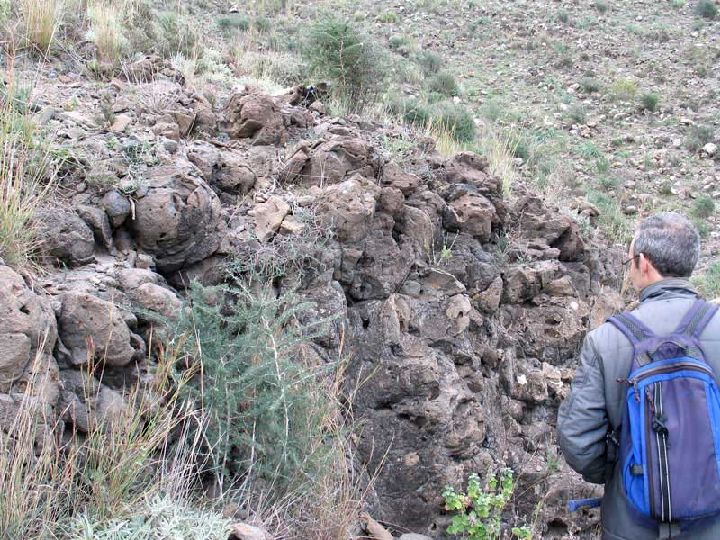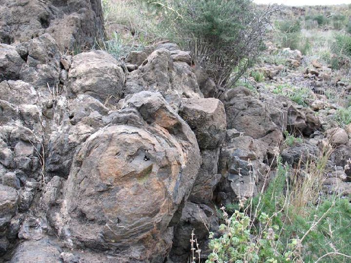 Las lavas presentan en algunos casos una descamación, similar a las capas de una cebolla, típica de la meteorización de lavas, que incluso recuerdan a estructuras de enfriamiento de la lava al entrar en contacto con el agua, las lavas almohadilladas o pilow-lavas, que debieron tener un origen freatomagmático.