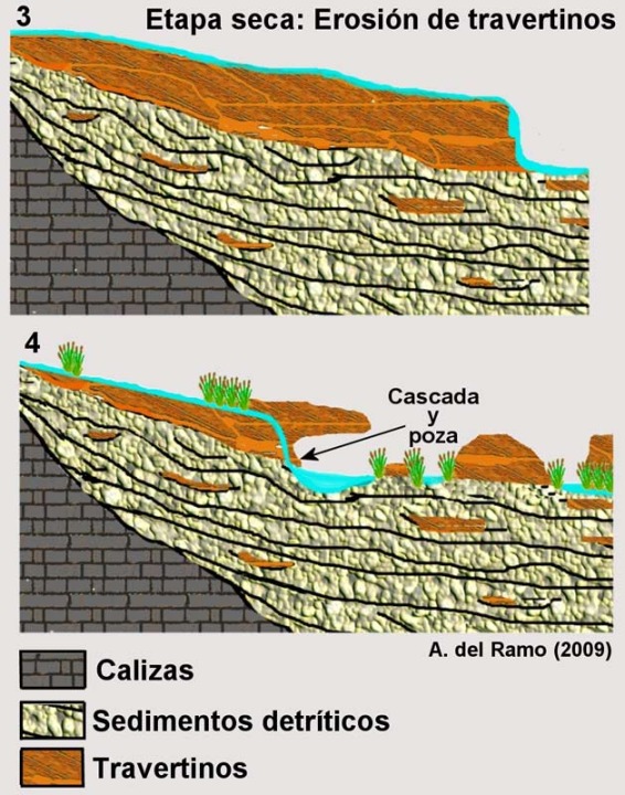 Para comprender la evolución de los travertinos con los cambios climáticos se recomienda el trabajo de (Martínez Tudela, et al., 1986):