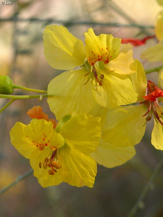 Pequeño arbolillo o arbusto de hasta 10 m de altura, aunque en Murcia no suele sobrepasar los 3 m. Tronco más o menos liso, agrietado, grisáceo y pardusco. Ramas jóvenes verdes, lisas, zigzagueantes, con tres espinas en los nudos, de las que parten numerosas hojas colgantes, bipinnadas, con raquis largo, aplanado, alado, de hasta 25 cm, y foliolos diminutos, lineares, algo lanceolados, muy numerosos. Inflorescencias en racimos colgantes, de numerosas flores, amarillas, con cinco piezas, provistas de uña, la superior mayor, con manchas rojizas. Fruto de tipo legumbre, de hasta 15 cm de longitud, con 6-8 semillas.