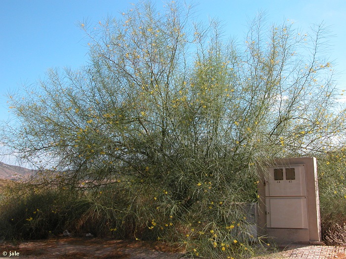Son muy características las ramas de los ejemplares naturalizados, en invierno se presentan prácticamente sin hojas, erectas, verdes, zigzagueantes y con numerosas espinas.