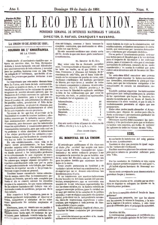 La aparición de Mefistófeles fue el inicio del boom periodístico en el municipio. Hay referencias de que en noviembre de 1880 se editó un periódico llamado La Unión, pero su vida debió de ser muy breve. El 1 de mayo de 1881 publicó su primer número El Eco de La Unión, un semanario que presentaba un formato idéntico a Mefistófeles. El Eco de La Unión afirmaba apartarse de la política y tener como lema "Todo para La Unión y por La Unión". En sus páginas incluía noticias locales, ecos de sociedad, reproducción de edictos e informaciones copiadas de periódicos nacionales. El Eco de La Unión suspendió su publicación en septiembre de 1881; si bien reapareció durante unas semanas a principios de 1886.