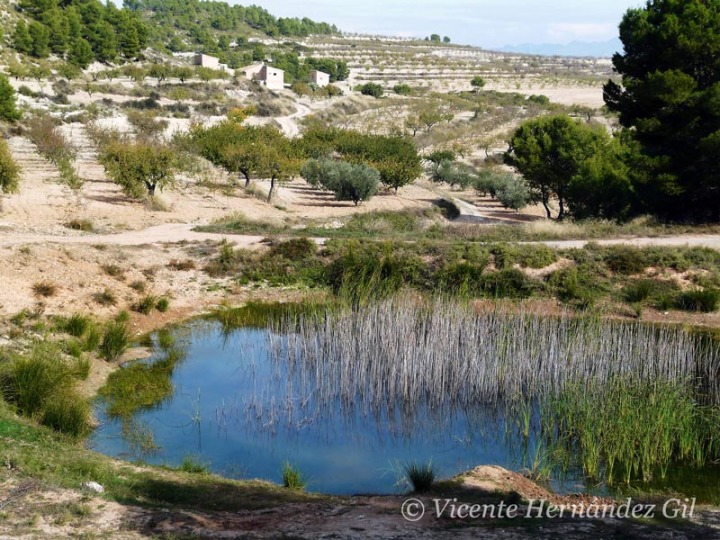 Es obvio que para recoger las aguas, estas laderas colectoras se mantienen con la vegetación natural, sin roturar, facilitando su acumulación mediante resaltes de tierra que la dirigen a lo largo de la ladera hacia la charca. Se aprovechan sustratos impermeables, de margas o arcillas para construir la cubeta, que suele tener un lado casi vertical opuesto al de más suave pendiente.