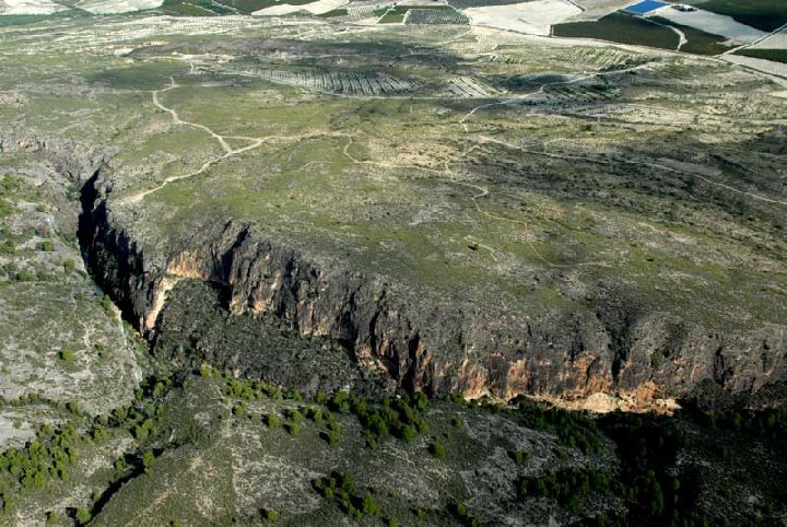 La Cueva o Sima de la Serreta, en la margen izquierda del cañón de Almadenes, ocupa el límite de los términos municipales de Calasparra y Cieza. Cuenta con un legado arqueológico, que confirma la existencia de presencia humana en la zona desde el Paleolítico Inferior y Medio. Sin embargo, es en el Epipaleolítico (transición entre Paleolítico y Neolítico), hace unos 9.000 años a. C., cuando empieza a desarrollarse el poblamiento en esta zona. Los yacimientos arqueológicos más destacados en los que se han hallado restos del Epipaleolítico son la Cueva de la Serreta (Almadenes), la Cueva de la Barca (Cabezo del Asno) y el Barranco de los Grajos, este último de gran interés arqueológico, ya que supone la confirmación de la pervivencia de las tradiciones paleolíticas hasta el III milenio a. C.