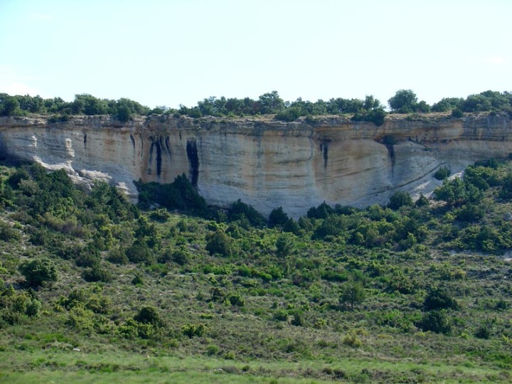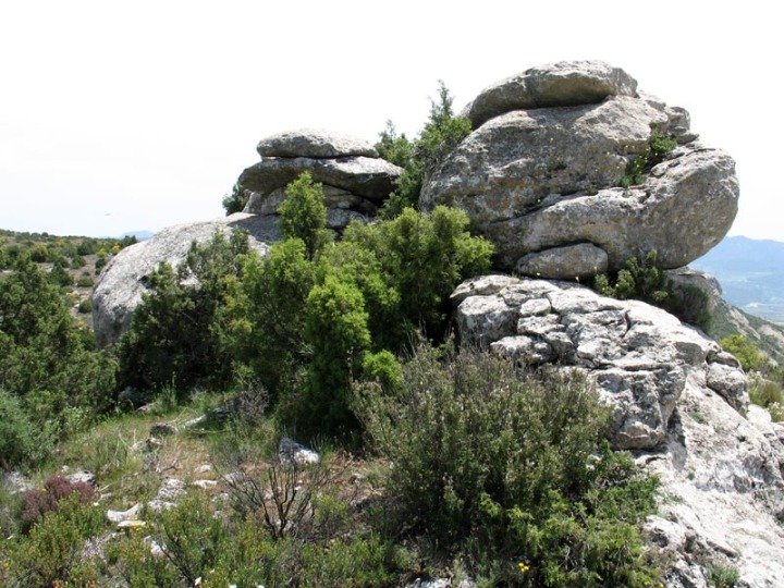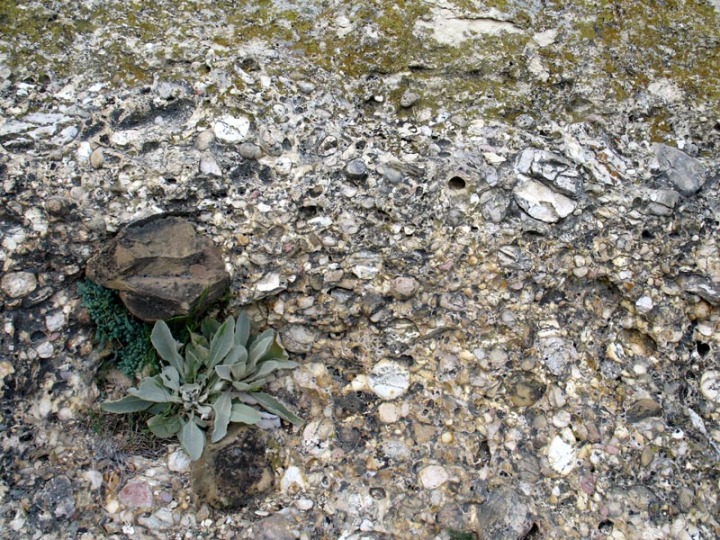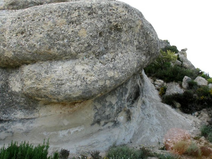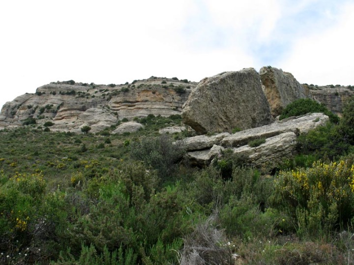 Las margas tienen intercaladas estratos de areniscas y pasadas de calizas bioclásticas con bases erosivas y secuencias masivas o con gradación de tamaños de cantos, y con densas concentraciones de fósiles, dominando las algas de rodolitos, pectínidos y equinodermos. Se formaron por corrientes submarinas de turbidez. Se pueden ver muy bien en la presa de la Risca. Aquí, junto a la antigua casa de la Rueda, hay unos magníficos ejemplos de diaclasas.