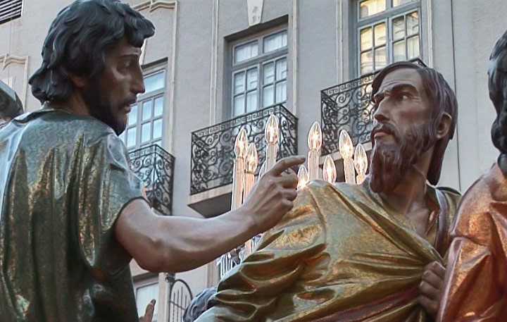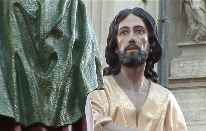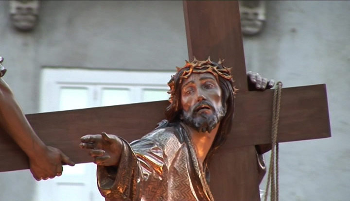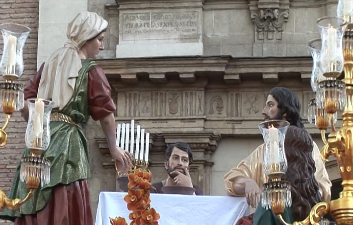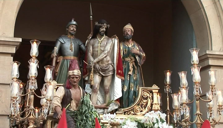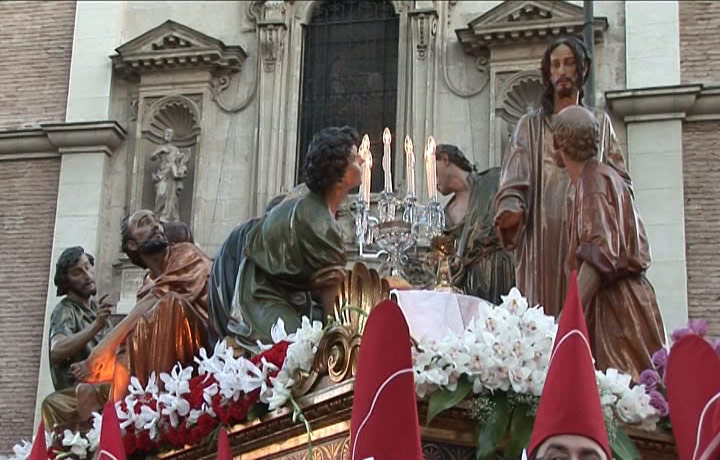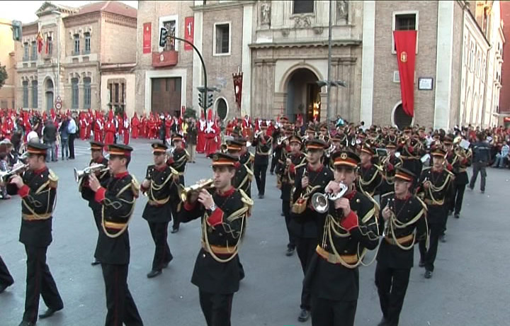 Banda de música tocando durante la Procesión de la Archicofradía de la Preciosísima Sangre del Miércoles Santo