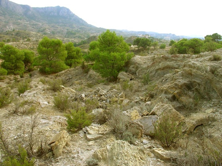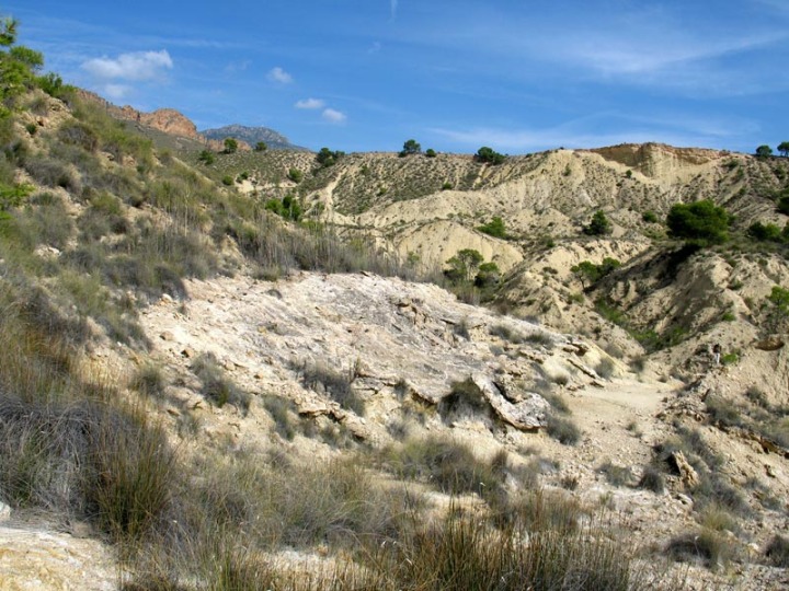 Continuando por el camino afloran las margas y margocalizas prebéticas del Albiense (Cretácico inferior), que aparecen en estratos alternos y subverticales. Estos materiales tienen un gran interés paleontológico ya que en ellos aparecían, antes de ser expoliados por coleccionistas de fósiles, numerosos ejemplares de equinodermos del género Toxaster y Hemiaster, ammonoideos de los géneros Desmoceras, Lytoceras, Tetragonites y Puzosia, coleoideos del género Neohibolites y algunos braquiópodos, así como, algunas mineralizaciones de celestina y cuarzo en las fracturas de las margocalizas.