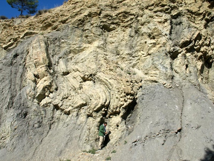 Las areniscas replegadas y dislocadas existentes en las margas eran sedimentos poco cementados, por lo que tenían un comportamiento relativamente plástico, que les permitió deslizarse desde zonas más someras por terremotos o grandes tormentas. Al deslizarse se replegaron y fracturaron hasta que finalmente se amontonaron en las zonas más profundas del mar sobre las margas euxínicas hace más de 100 millones de años. Posteriormente volvieron a ser plegados hace unos 20 millones de años por la orogenia Alpina.