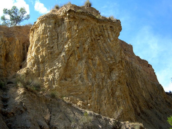 Otro aspecto geológico muy interesante son los grandes depósitos de terrazas del barranco del Mulo. Hay varios niveles de terrazas, la más antigua esta a bastante altura respecto al cauce actual lo que nos evoca la importante incisión erosiva durante el Cuaternario de estos cursos fluviales (figura 3). Los procesos geológicos externos hoy día aquí continúan muy activos, como ejemplo tenemos grandes desprendimientos, algunos de ellos tan importantes que casi han taponado el cauce del Barranco.