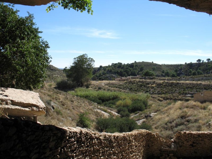 Este es un buen lugar para terminar parte del recorrido desde la cabecera de la rambla, bien saliendo a la carretera próxima que viene de Yechar, o bien retrocediendo y tomando un camino que asciende por la izquierda y que enlaza con la pista principal que va a la central hidroeléctrica.