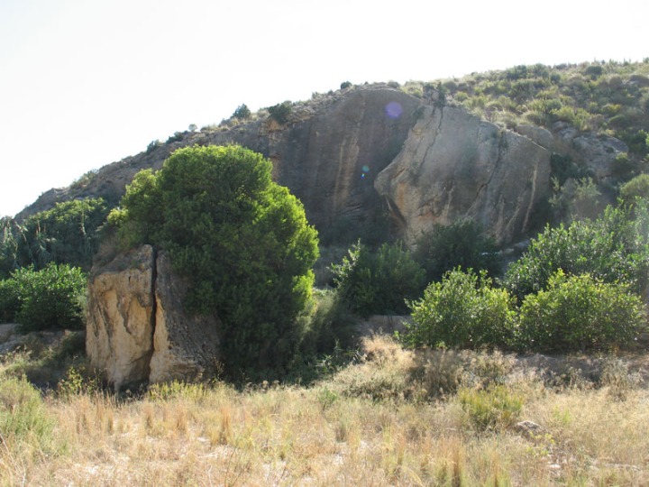 A partir de aquí la rambla se ensancha y cambia su dirección de nuevo hacia sureste. En esta zona destacan amplias terrazas y un importante abrigo. Es una cueva socavada al erosionarse las margas intercaladas entre las areniscas. Esta cavidad, está desgraciadamente muy alterada pues fue utilizada como corral del ganado.