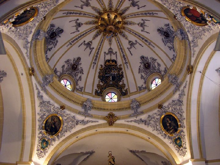 Al exterior los contrafuertes y las gárgolas delatan el origen gótico del interior donde una amplia nave central, limitada por presbiterio renacentista y coro neoclásico respectivamente, nos muestra unas bóvedas donde las molduras flamígeras de la crucería destacan en sus claves por el contraste cromático y los detalles de sus escudetes.