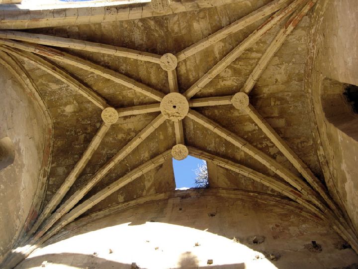 El actual monasterio de Santa Clara la Real fue fundado en el siglo XIII y construido sobre el palacete musulmán que había acogido a los últimos reyes moros. En su iglesia, y pese a las reformas de siglos posteriores, todavía se pueden admirar en el coro alto restos de bóvedas de crucería góticas decoradas en sus nervaduras con cielos estrellados y dragones, muy parecidas a las de la parroquial de Santiago en Jumilla, pero con un colorido que nos recuerda a los grandes temas fantásticos que se pueden admirar en distintos puntos de la Europa Gótica.