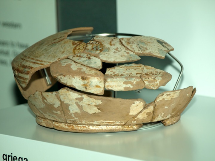 Albergaba en una de sus habitaciones ocho grandes Kráteras Áticas de figuras rojas (Grecia siglo IV a.C.) con escenas mitológicas, el conjunto más grande encontrado en un poblado ibérico, que además, junto a restos anfóricos y cerámicos íberos y ánforas importadas de Ibiza, el Egeo, Cartago y el Círculo del Estrecho, denotan su inclusión como escala importante en las rutas comerciales marítimas desde época Púnico-Íbera, la llegada de comerciantes o colonos griegos a esta latitud y la explotación de la Sierra Minera, que utiliza también este enclave como puerto de producción metalúrgica y exportación de minerales y metales.