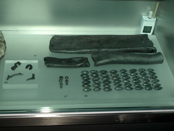 Además, tenemos que destacar un espléndido y numeroso conjunto de lingotes de plomo de unos 25 kg de peso cada uno con inscripciones y marcas de sus fundidores que operaban en Carthago-Nova, hoy día podemos ver expuestos en MNAS ARQVA los más completos y significativos.