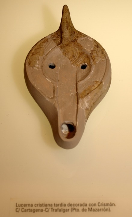 Museo Arqueológico de Mazarrón. Lucerna cristiana tardía con crismón cristiano del Puerto de Mazarrón
