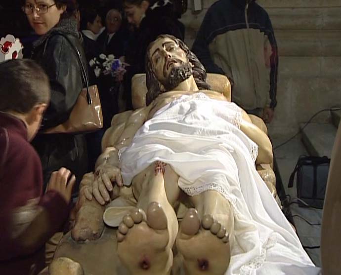 La Virgen vestida de luto preside el Santo Entierro de Jesús, dándole todo el pueblo simbólicamente el pésame.