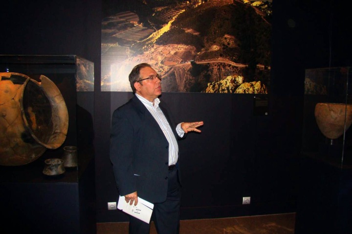 Fotografías correspondientes al acto de inauguración de la exposición "Novedades Arqueológicas de la Región de Murcia", realizado el 15 de marzo de 2012. Durante el acto el comisario de la exposición, Luis de Miquel, realizó a los asistentes una visita guiada por las cuatro salas que conforman la exposición.