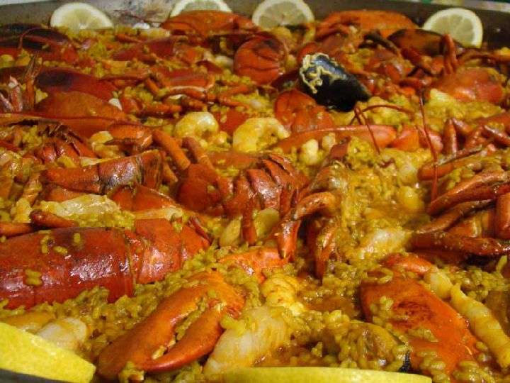 Esta paella se caracteriza por hacerse con carnes de mariscos exclusivamente, incluyendo como todas las variantes distintos vegetales. Recomiendo que la misma se elabore sobre la base de calamares, mejillones y langostinos.