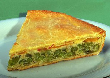 Relleno: Limpiar las chauchas sacando los cabos y cortando en trozos pequeños, hervir en poca cantidad de agua. Luego en una sartén saltar la cebolla cortada chica, los tomates pelados y finalmente las chauchas hervidas. Agregar 2 huevos, el queso rallado y dejar enfriar. Separar la masa en 2 partes iguales, formar 2 tapas de unos 25 a 30 cm., colocar 1 tapa en una asadera previamente enmantecada y enharinada, rellenar, colocar la otra tapa, pintar con huevo. Dejar cocinar en horno moderado hasta dorar.