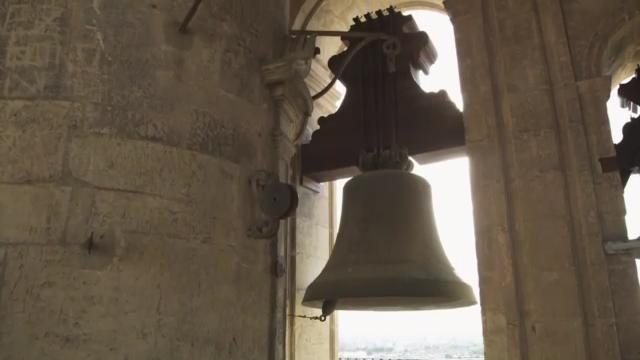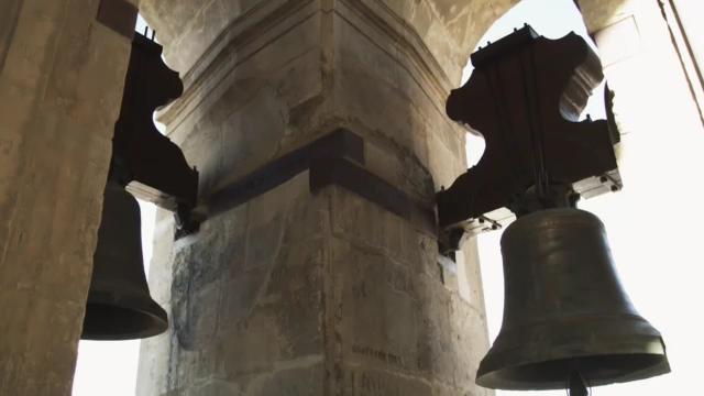 Las campanas de mayor tamaño y que no podían subirse a través de las rampas se elevaban a base de andamiajes y poleas situadas en el exterior de los muros de la torre de la Catedral.