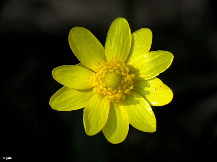 Hierba perenne, de desarrollo anual y floración otoñal, con varias raíces tuberosas, fusiformes. Hojas cortamente pecioladas, ovales, algo dentadas, horizontales, cas pegadas al suelo, híspidas en el envés. Flores solitarias, de aproximadamente 2,5 cm de diámetro, con pétalos de intenso amarillo, y numerosos estambres centrales, sobre tallos floríferos o pedúnculos cubiertos de pelo, pubescentes, de hasta 20 cm de altura. Fruto de tipo aquenio, de hasta 2 mm, oblongo, ligeramente curvado.