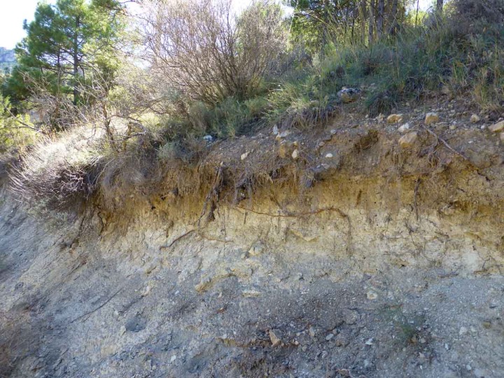 • Raíces que tienen una distribución horizontal, debido a la mayor acumulación de agua, variación de la dureza de los sedimentos y/o contenido en materia orgánica de algunos de los niveles de sedimentos.