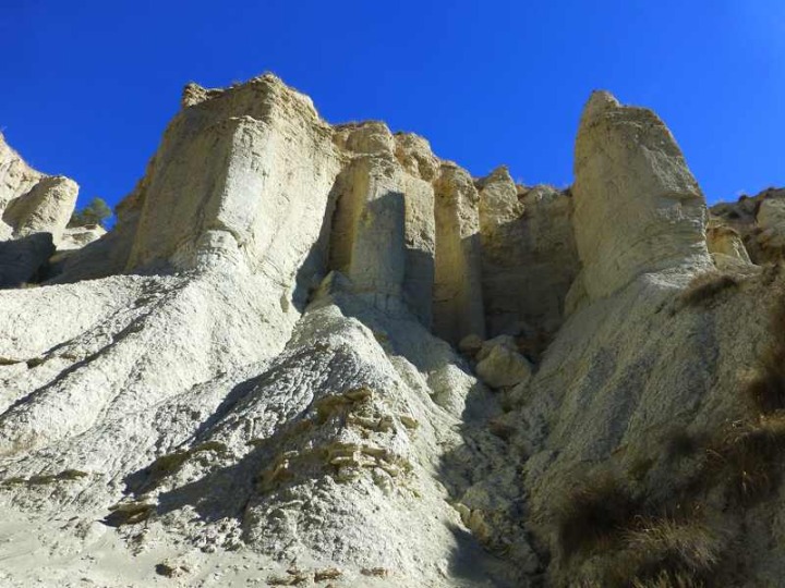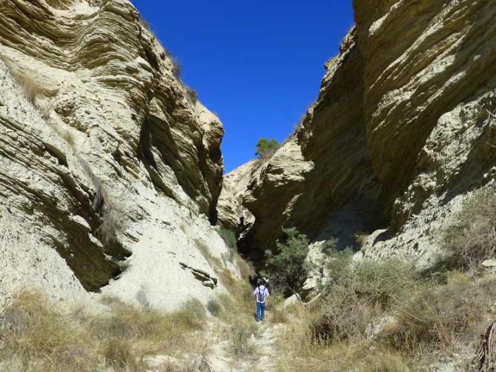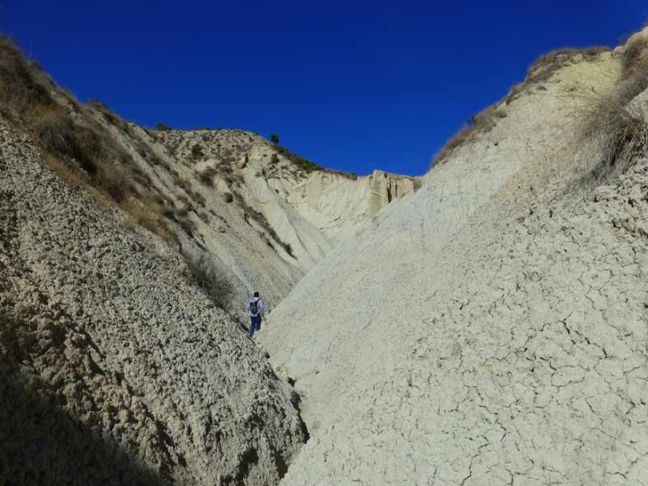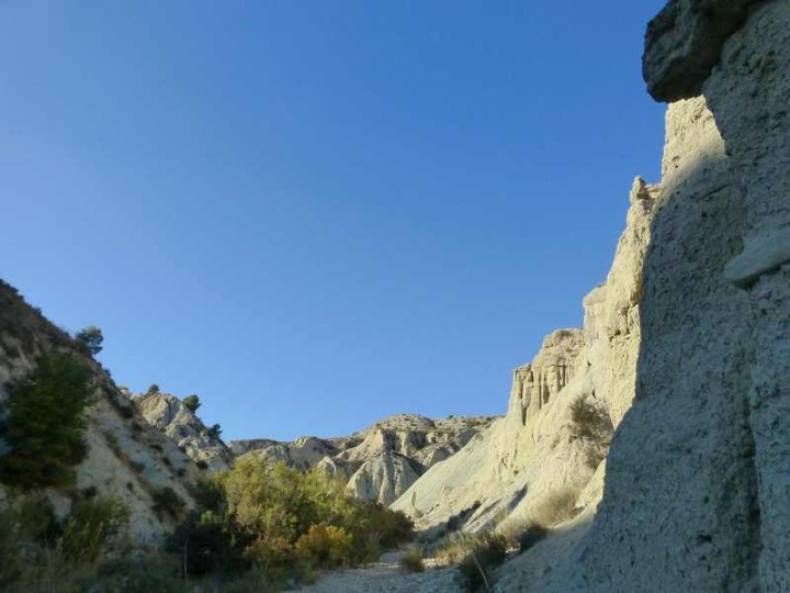 Más arriba la cuenca hidrográfica de la Rambla de Librilla se amplía formando en su margen derecho gran extensión de profundas cárcavas que forman un laberíntico paisaje que embelesa al visitante. Tierras de colores blancos, terminan hacia el oeste con el azul intenso del embalse del Algeciras, un verdadero espectáculo de la naturaleza. Y sin embargo, muchos denominan a estos paisajes en bad lands, que se traduce como tierras malas, por su poca fertilidad. En su margen izquierdo, las paredes se hacen verticales, con formas caprichosas, y en ocasiones seccionadas por algunas cárcavas cuyas cabeceras están formadas por laderas verticales y redondeadas por procesos de sofusión, que han generado inmejorables ejemplos de piping. Aquí las terrazas y piedemontes coronan estos relieves, evocando momentos en los que el cauce de la Rambla de Librilla iba a decenas de metros por encima del actual.