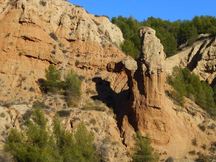 • El intento de reforestación con pinos de algunas laderas, que lejos de frenar el fenómeno han acelerado la erosión, debido al aterrazamiento indiscriminado y eliminación de la vegetación natural. El ejemplo más llamativo de esta mala práctica forestal está en la ladera norte del cerro El Castellar.
