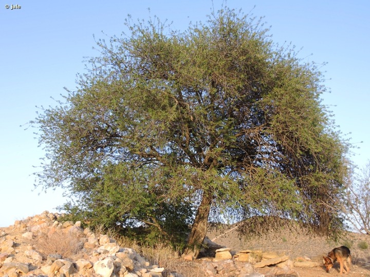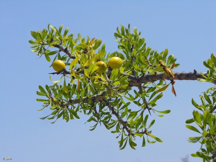 El argán (Argania spinosa) es un árbol fundamental de la cultura bereber y norteafricana. Es el famoso arbolillo salpicado de cabras equilibristas del que se obtiene un aceite muy valioso, con tantas propiedades medicinales y hasta cosméticas que ha sido denominado oro líquido. Entre los principales usos de la “nuez de argán”, además de servir como forraje para el ganado (principalmente cabras) y producir un aceite que sustituye al de oliva para cocinar, están los que se atribuyen a revigorizar el cuerpo, regenerar de la piel y su carácter estimulante o afrodisiaco.