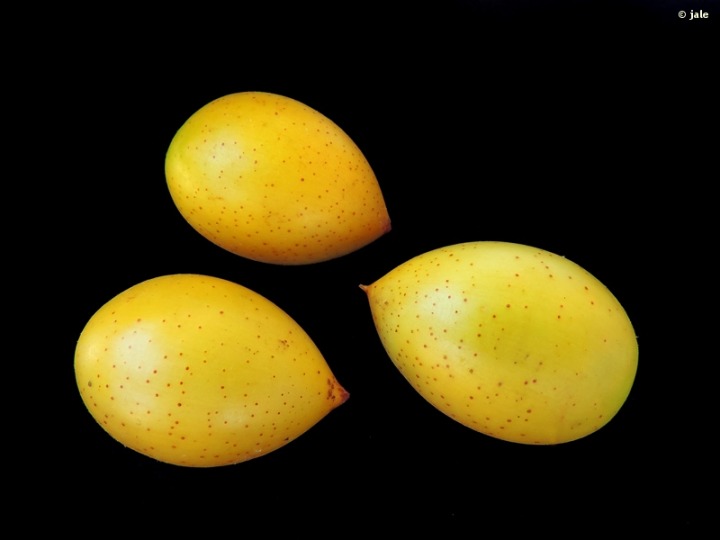 Pequeño arbolillo de hasta 3 m de altura, que puede alcanzar los 10 m y convertirse en árbol en su región originaria. Presenta copa compacta y tallos de ramas leñosas y espinosas, intrincadas, que recuerdan a las de un espino. Hojas alternas, enteras, algo espatuladas, sin peciolo, pero más estrechas en su base, por lo general no mayores de 3 cm de longitud. Flores acampanadas, de simetría pentámera, pequeñas, poco aparentes y discretas –si apareciesen solitarias, pero lo hacen en gran número por toda la planta y al mismo tiempo–, de color amarillento o ligeramente verdosas. Fruto de tipo drupa, ovoide, de hasta 2,5 x 5 cm, amarillo en la madurez, con parte externa carnosa que recubre 2 o 3 semillas, agrupadas en una estructura rígida y leñosa.