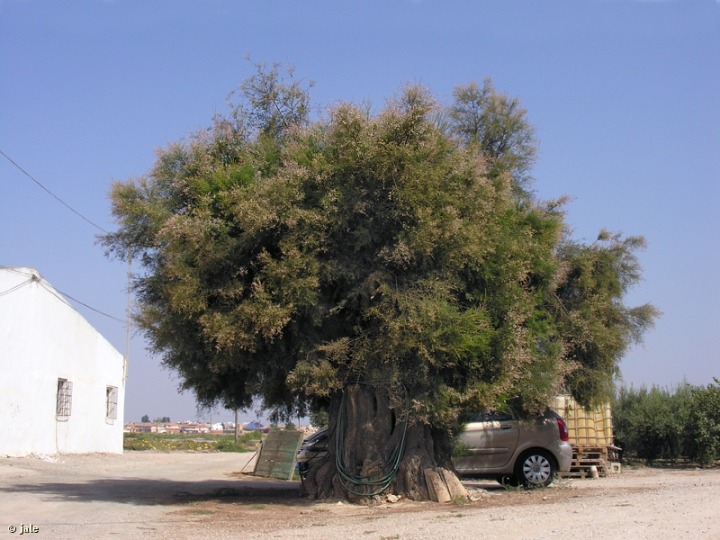 Finalmente, como se ha indicado, los tarays no suelen desarrollar tronco destacado y grueso, sino, a lo sumo, varias ramas de considerable perímetro que levantan una copa arbustiva tupida, alta e irregular. Sin embargo, excepcionalmente, en la mayoría de los casos modelados por el hombre, pueden encontrarse, cerca de antiguas casas, en el Campo de Cartagena, tarays arbóreos. Sin duda, el más destacado es el monumental Taray de Lo Santero, en Torre-Pacheco, un Tamarix canariensis prácticamente único en España por las dimensiones de su gran tronco, que tiene 5,20 m de grosor.