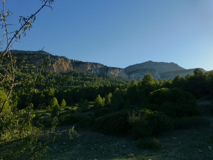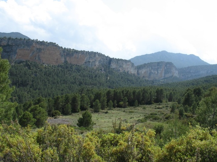 En el centro las dolomías cretácica cortadas por el barranco Hondares. A la izquierda el pico del Calar del Lanchar. A la derecha los cenajos de Somogil