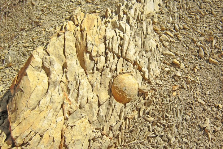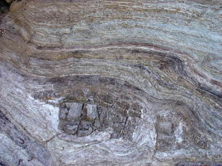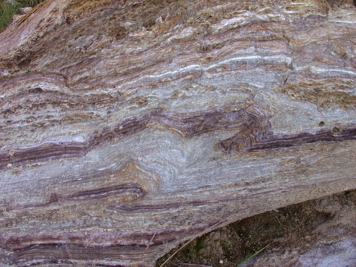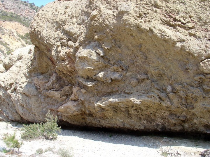Yesos triásicos muy tectonizados, que representan la base del cabalgamiento del Subbético interno sobre las margas y margocalizas cretácicas del Subbético externo