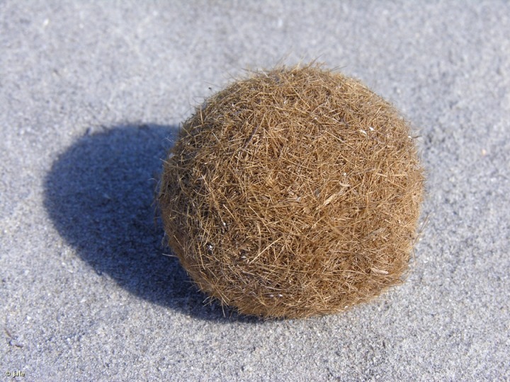 Durante los temporales de levante y días posteriores es habitual que se acumulen restos de Posidonia oceanica tanto en las playas, en montones extensos, de hasta un metro de altura, denominados arribazones, fundamentales para el equilibrio natural de las mismas, como en una franja de agua junto a la orilla, en suspensión. Estos restos de ‘alga’ flotantes son molestos y desagradables para los bañistas, pero con el batir de las olas y la superficie ondulada del fondo se forman unas curiosas bolas esféricas (o casi) denominadas “pelotas de mar”, muy conocidas, y frecuentes en las playas con praderas marinas cercanas, de habitualmente origen confundido con la acción del escarabajo pelotero.