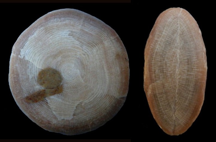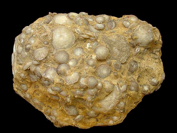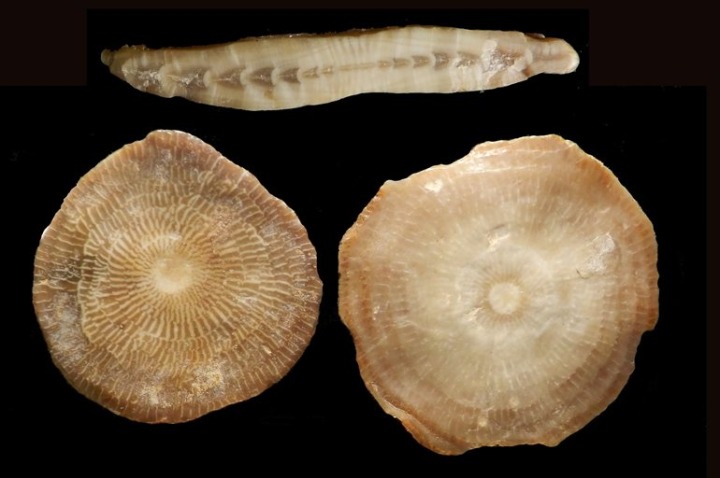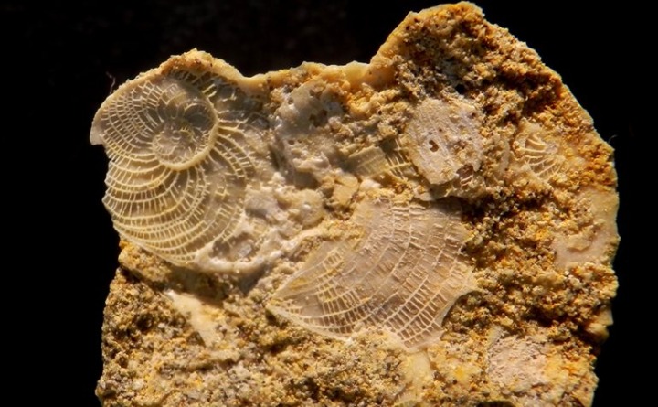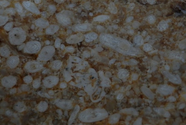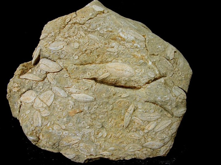 Nummulites del Eoceno de Sierra Espuña. Aunque en este foraminífero no suele superar los dos centímetros, en esta sierra se localizan ejemplares de más de 5 cm